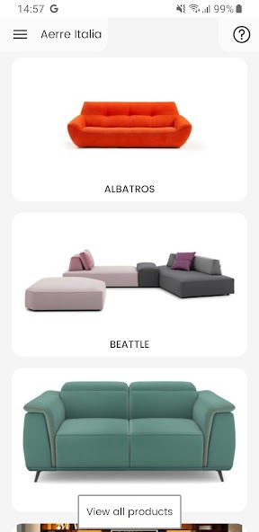 Aerre Italiaアプリを使用すると、 Aerre Italia Sofaを組み合わせて構成し、最も気に入っているコーティングを使用して、目的のスペースに配置できます。